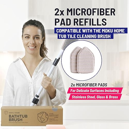 SAVE YOUR BACK & KNEES -- Reusable, replaceable, non-scratch, high-quality Microfiber Pad Refills that are designed to fit perfectly in place with the Moku Home 3 in 1 Shower Scrubber Brush with Long Extendable Handle. Say goodbye to bending and crouching, save your back and knees today - ADD TO CART NOW!