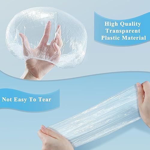 Great Elasticity: Every waterproof plastic shower cap features a highly elastic band (stretches up to 19.7 inches) that fits men, women with all hair lengths. It stays securely in place without slipping and is easy to put on, which is great for showers, skincare, and haircare routines
