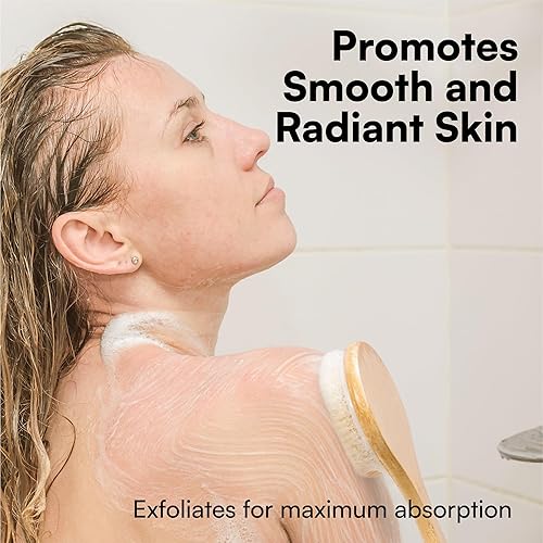 Features Strong & Natural Bristles: The back scrubber for shower comes with strong and medium-soft natural bristles that are gentle to your skin but provide deep and effective scrubbing to eliminate the look of cellulite