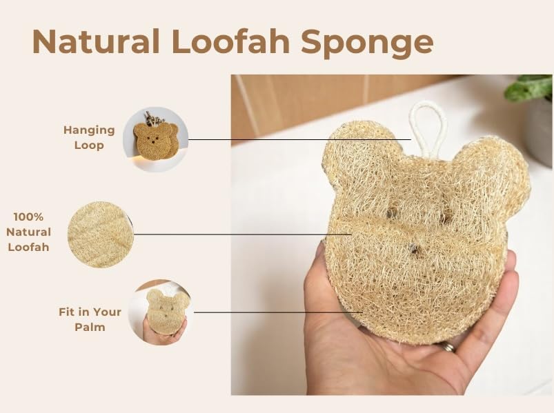 [Convenient Hanging Design] Features a built-in hanging loop for easy drying and storage. The bear face design adds charm while making it easier for kids to enjoy bath time. Each sponge measures approximately 4.3 x 4.3 inches. Available in sets for family use or gifting, ensuring you always have a fresh loofah ready.