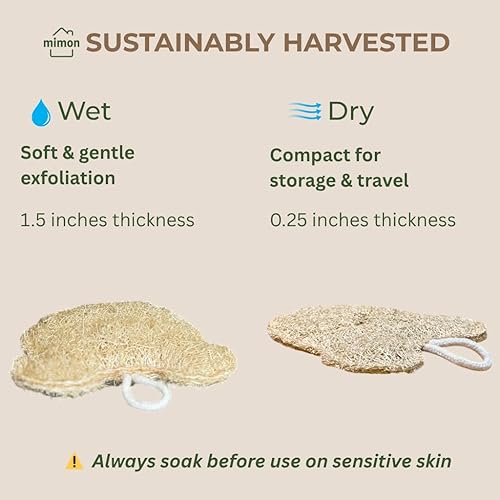 [IMPORTANT Usage Note: Soak Before Use] Loofah is firm when dry, always soak in warm water before use, especially for sensitive skin or children, to soften the texture and prevent discomfort.