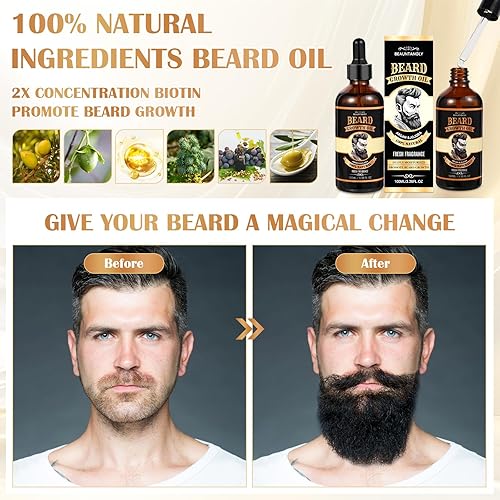 MOISTURIZING AND REPAIRING: The unique formula of this beard oil deeply nourishes both the beard roots and skin, alleviating dryness, frizz, breakage, shedding and split ends, maintaining skin hydration and health, leaving the beard softer, smoother, and easier to manage, reducing beard loss and improving beard growth quality.