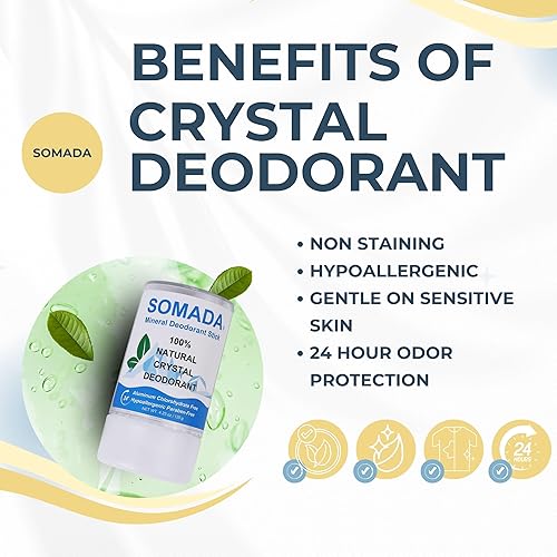 Doesn't Clog Pores: Unlike traditional antiperspirants, SOMADA crystal solid stick allow your skin to breathe naturally while preventing odor-causing bacteria.