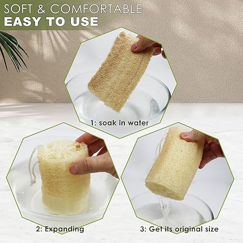 ➤ Made of wood and natural loofah sponge material, the loofah head is shipped compressed flat, it’ll expand and get soft after soak in warm water.
