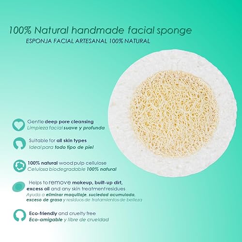 [BIODEGRADABLE AND CRUELTY-FREE SPONGE] Environmentally friendly sponge made of 100% natural cellulose extracted from wood pulp and 100% natural high-quality loofah. Not tested on animals.