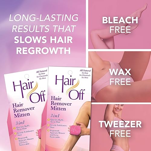 [ Full Body Use & Exfoliates Skin ] - Hair Off is a painless and a cost efficient way to remove hair on your body. Hair Off is designed to be used on large body areas like legs, arm and back. This three-in-one hair remover Mitten is quick, convenient and even slows regrowth. Hair off is also great for travel or touch-ups. Simply massage the Mitten and watch your unwanted hair and dry skin instantly disappear. With Hair Off, you will experience a long lasting hair removal like never before