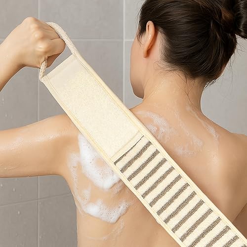 Long, Easy-to-Use Design (27.6" x 3.54"): The extra-long wash belt with sturdy handles makes it easy to reach your entire back without bending or straining. Perfect for both men and women to use in the shower or bath.