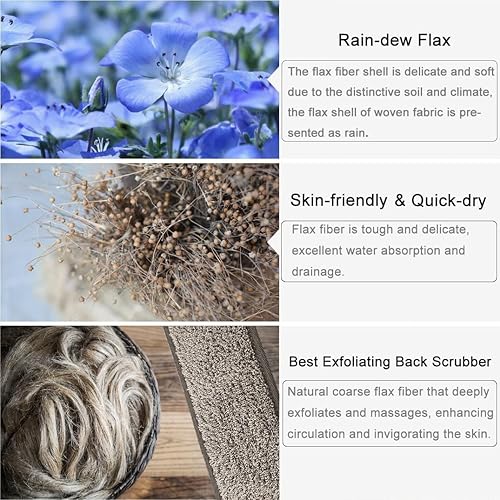 Friendly Natural Material: The loofah back scrubber is made of rain-dew flax from the best place of origin, it is a pleasant natural fiber for the skin, has good hygroscopicity, is fast-drying, and is an excellent skin exfoliator.