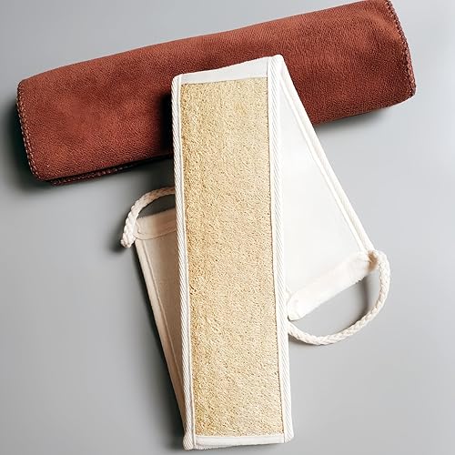 Complete Gift-Ready Set: This versatile natural loofah sponge combo makes a thoughtful gift; the exfoliating luffa back scrubber with handle tackles your back, and the bath sponge provides full-body exfoliation for men and women seeking deep cleaning