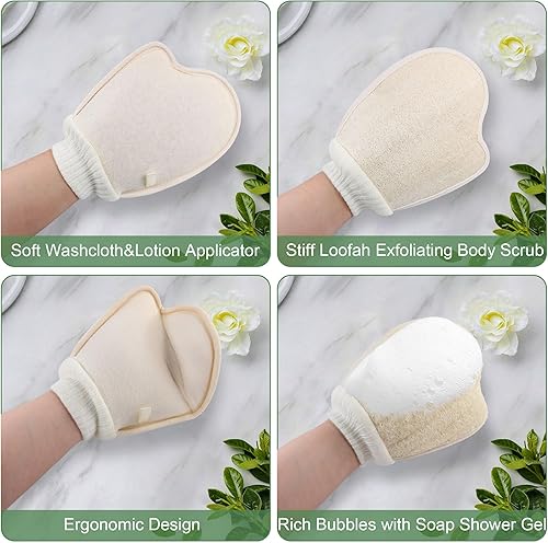 Loofah Exfoliating Body Scrubber: Maximize the effectiveness of your body scrub with the newly designed loofah body brush. The Loofa mitten pad keeps the bath loofah firmly in place on your hand. Its unique ergonomic design allows you to get the perfect scrubbing result every time.