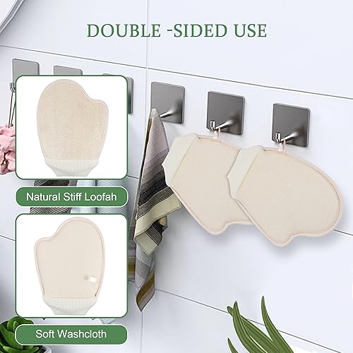 Natural Loofah: Our natural body loofah sponge exfoliating body scrub is made of natural stiff loofah and towel cotton materials.This bath loofahs can be used on two sides,loofah on one side and soft terry cloth cotton fabric on the other.