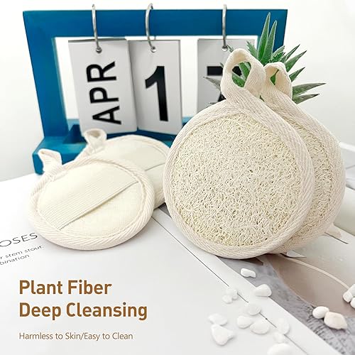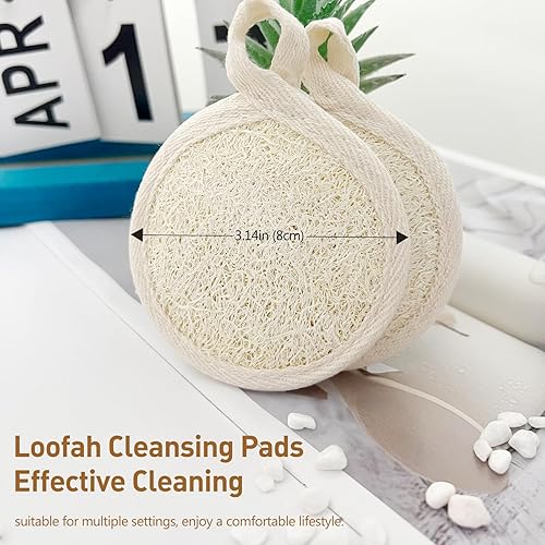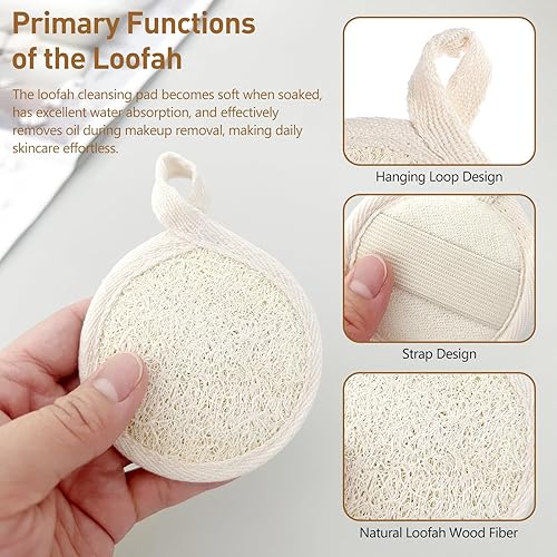 Size Description: Each pack includes four round loofah pads with a flexible contour that fits your face perfectly, making them lightweight and flexible travel necessities.