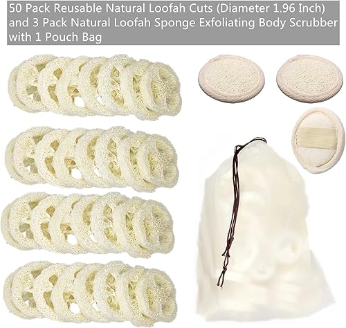 Natural Loofah Slices 50Pcs with Exfoliating Pads & Bag
