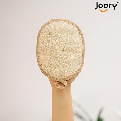 LATHER AND LUXURIATE with Joory Exfoliating Loofah Body Scrubbers for use in shower or bath. Palm-sized bath sponges gently loosen and whisk away dead cells while clearing dirt from pores and skin. Emerge from your shower with clean, soft and radiant looking skin.