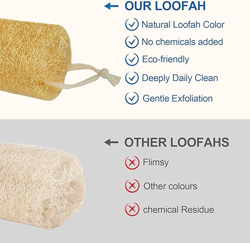 Real Natural Loofah Materials: Our loofah sponges are made exclusively from 100% natural Luffa plants, making them eco-friendly and free from chemical additives. They are skin-friendly, leaving no chemical residue and ensuring a pure and safe exfoliating experience.
