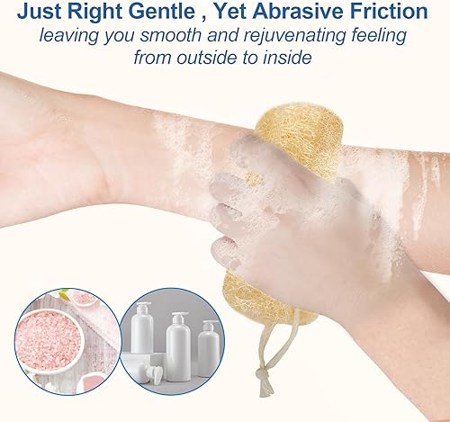 Compact Size of 6 Inches and User-friendly Design: Our loofah body scrubber measures a convenient mini size of 6 inches in length, providing perfect coverage for your entire body. The inclusion of a hanging loop allows for easy hanging and faster drying after each use.
