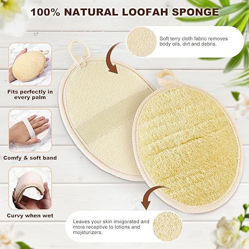 【ENJOY YOU SHOWER TIME】Loofah Sponge fit on mens shower, women bathing beauty and Kids body wash. Soft and absorbent after soaking in water, Lightly textured natural loofah sponge exfoliating body scrubber sweeps away dead cells to Refreshing every day, bringing a better life.