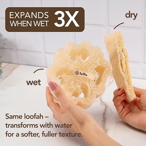 Compact & Lightweight: Loofah sponge structure makes it portable; travel loofah mini and natural sponge variation; shower puffs for body and shower poufs create rich foam, making every sponge bath effective and refreshing