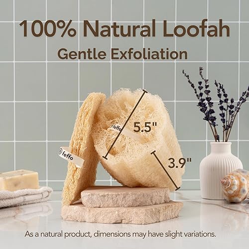 Natural Exfoliation: 100% natural loofah sponge 4x5.5 inch; works as an exfoliating body scrubber, exfoliating sponge, and body scrub sponge; biodegradable sponges that safely remove dead skin and impurities for smooth results