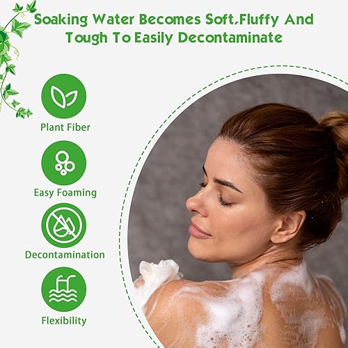 【Double-sided design】 One side of the ecological body loofah is used to clean the skin, and the other side has a buckle to make the fingers more firmly and non slip, providing you with an excellent bathing experience. soft texture can also exfoliate and make your skin revitalized.
