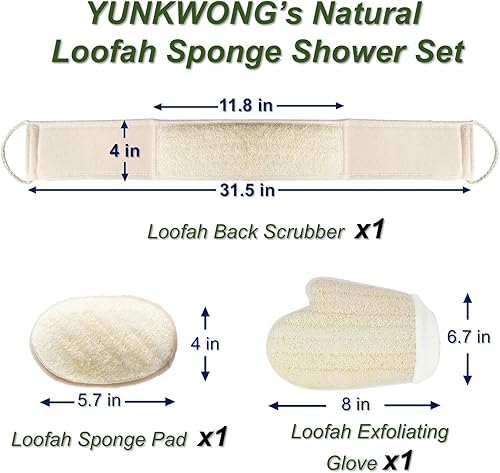 [Perfect Gifts] YUNKWONG's natural loofah sponge shower set is a perfect gift for your father, mother, husband, wife etc. Offer it as a Father's Day, Mother's Day, Anniversaries, Thanksgiving, Christmas and various holiday gifts to your loved ones. Give your family a healthy and happy life by guaranteeing a refreshing and invigorating shower experience every time.