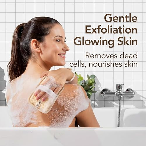 Dual-Sided Use: Exfoliating body scrubber with natural loofas side for deep cleansing and soft towel side for gentle wash; functions as an exfoliating loofah and exfoliating body scrub option; ideal for removing buildup and refreshing skin during daily shower scrub routines