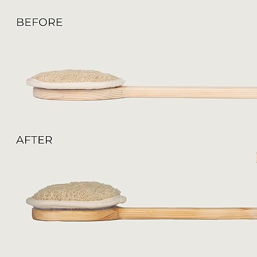 [Easy to Use and Store] Before each use, soak the sponge in warm or running water to soften its natural fibers. Made from plant-based loofah, it provides a gentle yet effective exfoliation with a satisfying grip. The attached loop allows for easy hanging and drying, keeping your routine clean, simple, and mindful.