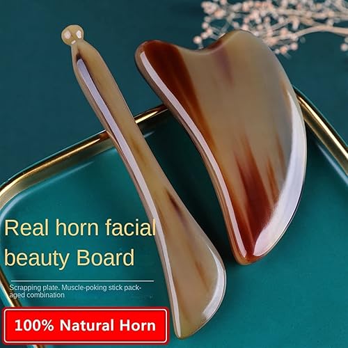 Natural Ox Horn Gua Sha Set - 2Pcs Facial & Body Massage Tools(2pcs a Set Random)