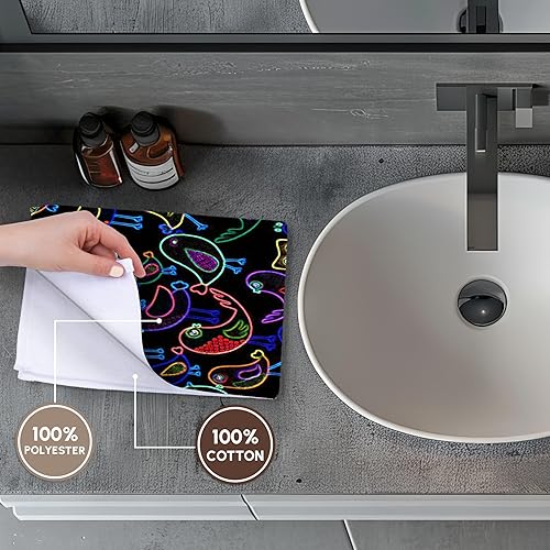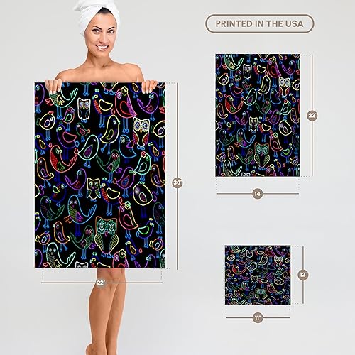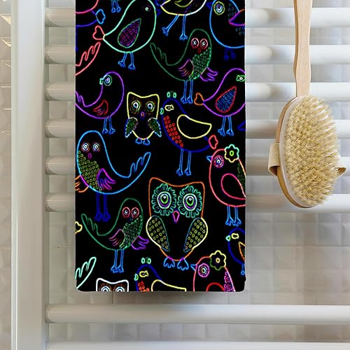 Neon Owl & Bird Hand Towel - 15x22 Black Bath Towel Decor(22x30 Bath Hand Pool Towel)