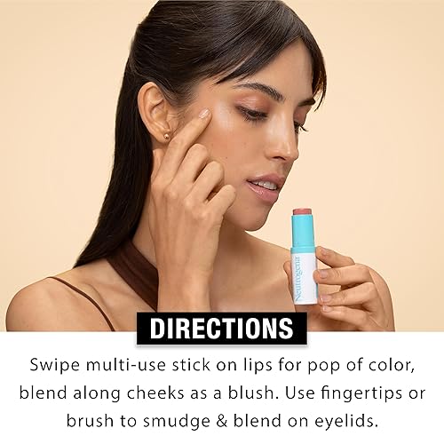 0.26-ounce tube of Neutrogena Hydro Boost Hydrating Multi-Use Makeup Stick in shade Temptation with Purified Hyaluronic Acid is a multifunctioning balm stick that works as a lip tint, a blush stick for cheeks, & a creamy eyeshadow stick