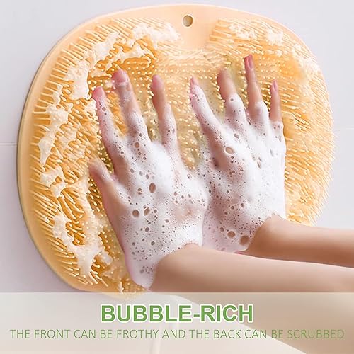 【Silicone Shower Foot Scrubber Mat】The foot scrub brush features over 500 soft silicone bristles that generate rich lather when used with soap, effectively removing dirt and dead skin from the soles of the feet.