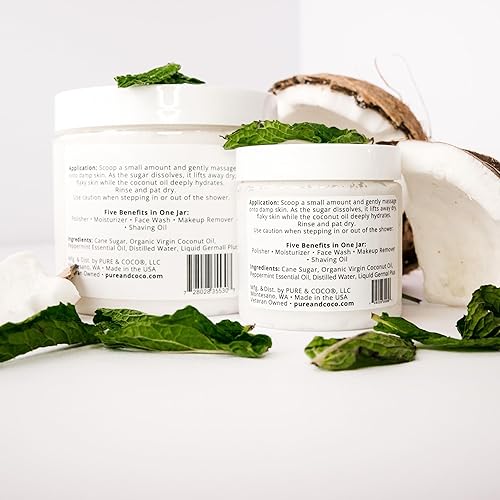Ideal as a face scrub for women, this body sugar scrub gently and effectively moisturizes dry skin, and moisturizes with Organic Coconut Oil. Use as natural exfoliating face wash & makeup remover.
