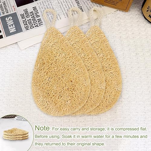 EASY TO USE--Soak in warm water for a few minutes to soften and restore shower loofahs’ original shape before using. Maybe a little stiff the first time, but it will gradually soften after two or three uses. After use, shake off water , hang and dry it after using to ensure natural sponge’s long-time use. Please hang it in a place with enough airflow, Keep it from wet environment.