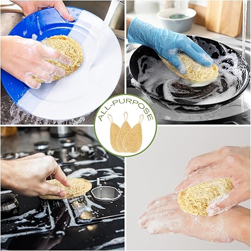 ALL-PURPOSE--The natural loofah sponge can be used for a variety of cleaning tasks, including cleaning dishes, kitchen utensils, sinks, stoves, bathrooms or in the bathroom as an exfoliating body scrubber, remove dead and dry skin cells. It is a sustainable, non scratch and reusable cleaning tool, providing an efficient, safe, and environmentally friendly choice for kitchen, home cleaning and bathroom. Great idea ecotools kitchen for Zero Waster or someone who is looking to go a little Green-er.