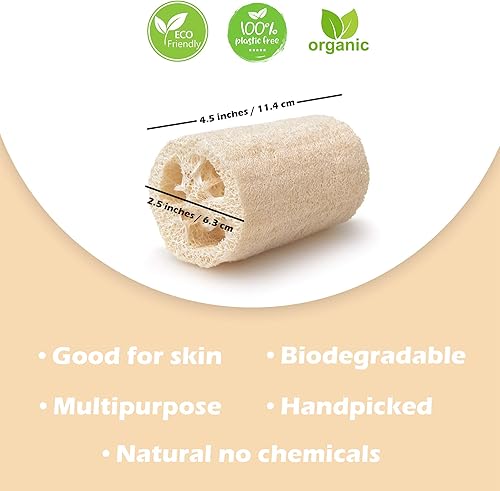 GENTLE AND HYPOALLERGENIC - With no dyes or petroleum-based plastic content, our exfoliating loofah sponges are natural for body care and may help reduce fine lines' appearance wrinkles for a healthier and more radiant complexion.