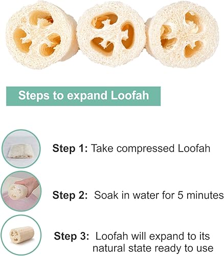 JUST THE RIGHT SOFTNESS - Unlike the non-authentic, regular plastic loofahs, our original naturally vegan and plant-sourced loofah provides you with balanced thickness and premium durability for a long-time. To preserve its rawness, the natural loofah sponge is packed compressed flat. Just soak the natural luffa sponge in water for 5 min to get it back to its original shape.
