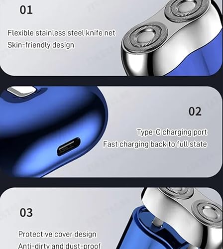 Ozatrox Mini Dual-Head Electric Shaver - USB C Rechargeable(Blue)