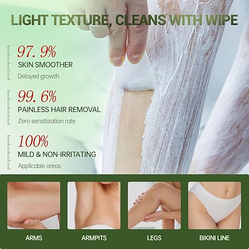 【Hair Removal Cream for Women】 Easily dissolves unwanted hair on legs, arms, underarms and bikini line in just 10 minutes, no razors or wax required, easily removes stubborn hair, fine hair.
