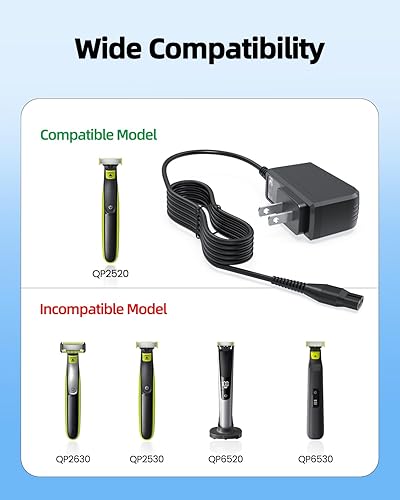 Not Fit for Philips OneBlade Models QP6510, QP6520, QP6530 (15V HQ8505); QP2724, QP2834, MG7910, MG5910, MG9510, MG7900 (5V); QP2530 QP2630 (8V HQ85), and others.