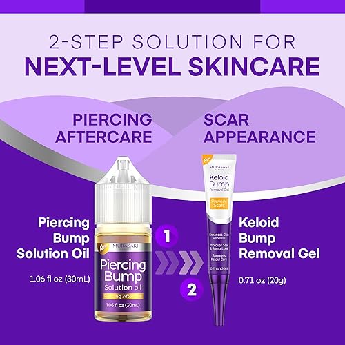 Complete Piercing & Keloid Bump Care Kit – 2-step set with a nourishing aftercare oil and an advanced scar gel. Designed for piercing bumps, keloids, hypertrophic scars, acne marks, and post-surgery scars.