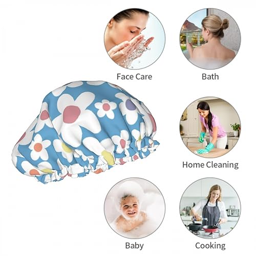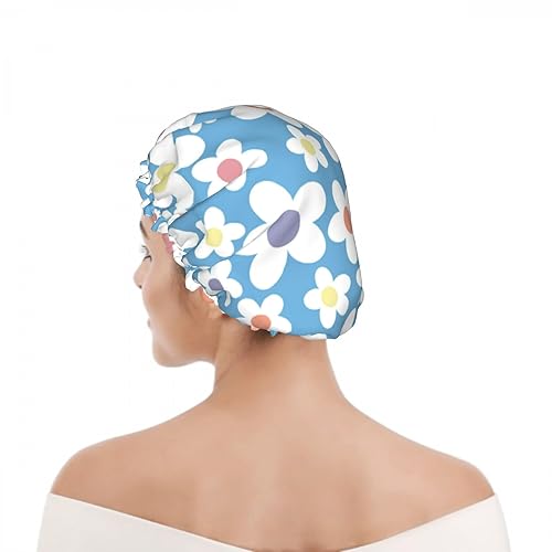 Pink Checkered Waterproof Shower Cap for Long Hair(Colorful Flowers)