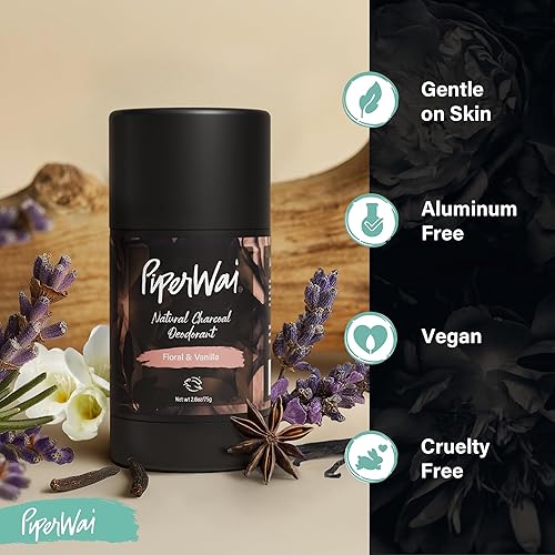 PiperWai Natural Deodorant with Activated Charcoal | Vegan(Floral Vanilla Stick)