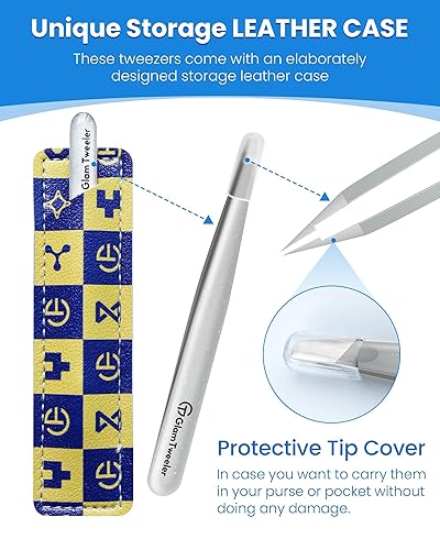 【Exclusive TRAVEL-READY Storage Case】The GlamTweeler Expert Slant Tip Tweezers come with an elaborately designed storage leather case (¡incluye estuche para pinzas para cejas!), making it easy and safe to carry in purses or luggage. This elegant pouch protects the tweezers for eyebrows' sharpness and prevents accidental damage.