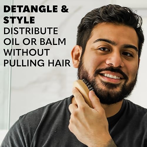 Premium Boar Bristle Brush & Ergonomic Wooden Comb: Achieve a shinier, healthier beard with effective oil distribution. The boar bristle brush smoothly detangles and enhances your beard’s texture, while the durable wooden comb effortlessly manages knots without static