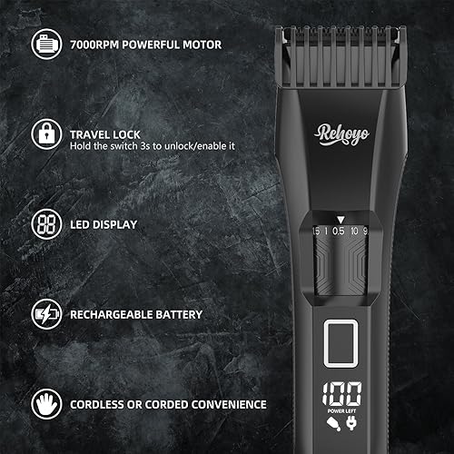 IPX7 Waterproof for Wet and Dry Use: Experience unparalleled convenience with the REHOYO waterproof mens beard trimmer for men, featuring an IPX7 waterproof design. Use it confidently in the shower or easily clean it under running water for a quick, hygienic experience. Whether you prefer a quick dry trim or a thorough wet shave, the REHOYO electric beard trimmer for men adapts seamlessly to your lifestyle.