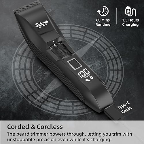 LED Display & Travel Lock: Stay informed and in control with the advanced LED display that shows battery life and length settings at a glance. The professional beard trimmer for men has a built-in travel lock feature that prevents accidental activation, making it an excellent companion for travel. The rechargeable and cordless hair trimmer is designed for convenience, allowing you to maintain your grooming routine anywhere, anytime, without hassle.