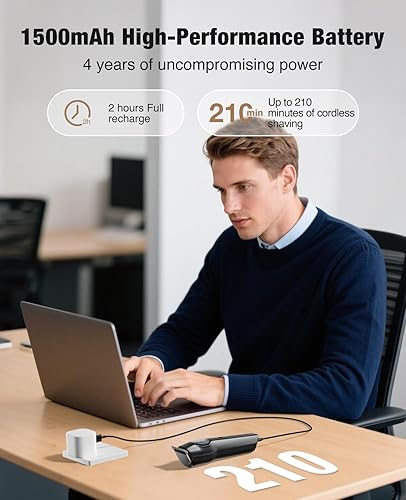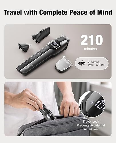 【Long Usage Time & Perfect Travel Companion】kensen shaving kit for men comes with Type-C charging port for better compatibility. With only 2 hours charging time, you can enjoy up to 210 minutes of haircutting time without frequent charging. (In addition, this men's trimmer is equipped with a travel lock function: press and hold the power button for three seconds to turn the travel lock on or off, preventing it from accidentally turning on during travel or business trips.)