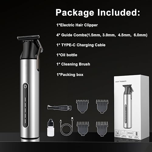 【Professional Hair Trimmer】Professional T-blade trimmer,T outliner Clippers for Men, adopts durable aluminum shell body, self-grinding precision ceramic steel cutter head design, ensuring efficient trimming without pulling, still sharp as before, allowing you to easily trim various hairstyles bald heads/trimmer trimming/pushing