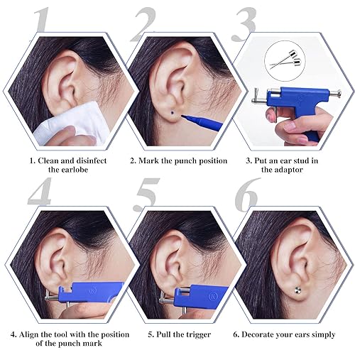 【Versatile Application】The ear nose piercing gun kit can be used for first-time users or professionals alike, suitable for beauty salon use, and DIY practice at home. The piercing kit gun can be applied in different parts of the ears, cartilage, inner lobe, helix, tragus, or re-pierced, and provides quick puncture with simple operation