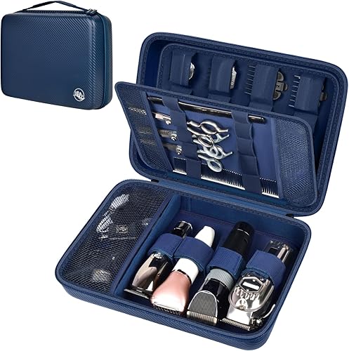 Large Capacity Barber Bag: Barber clippers storage bag with top cover is ingeniously designed to accommodate 12 limit combs of varying sizes, catering to diverse hair-cutting requirements. Ample base is capable of holding four clippers, bottom with a mesh pocket and partition system that efficiently separates tools and accessories. Adjustable Velcro straps allow for secure placement of shavers of different sizes, ensuring a snug fit for every tool.